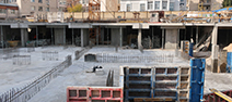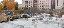 Виконуються роботи з улаштування забірки, встановлення дренажних систем, гідроізоляція підземної частини, улаштування фундаменту, улаштування моноліту ростверкового фундаменту.