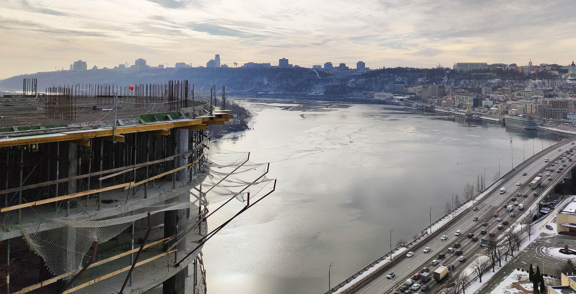 У Будинку 1 завершуються роботи з улаштування плити перекриття 25-го поверху. Виконуються роботи з цегляної кладки на рівні 16-го поверху. Монтаж сходових маршів 22-го поверху, монтаж вентиляційних блоків.