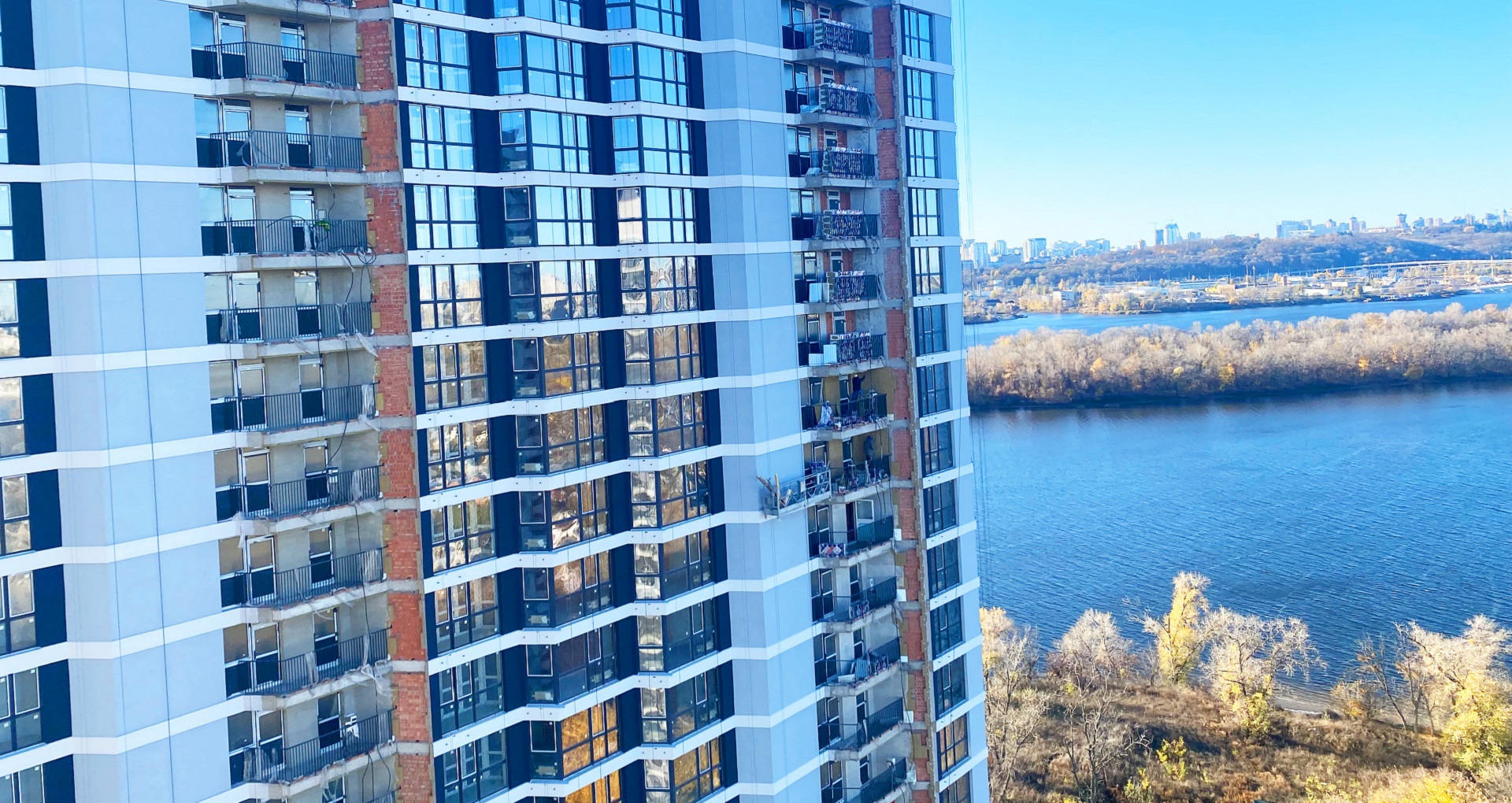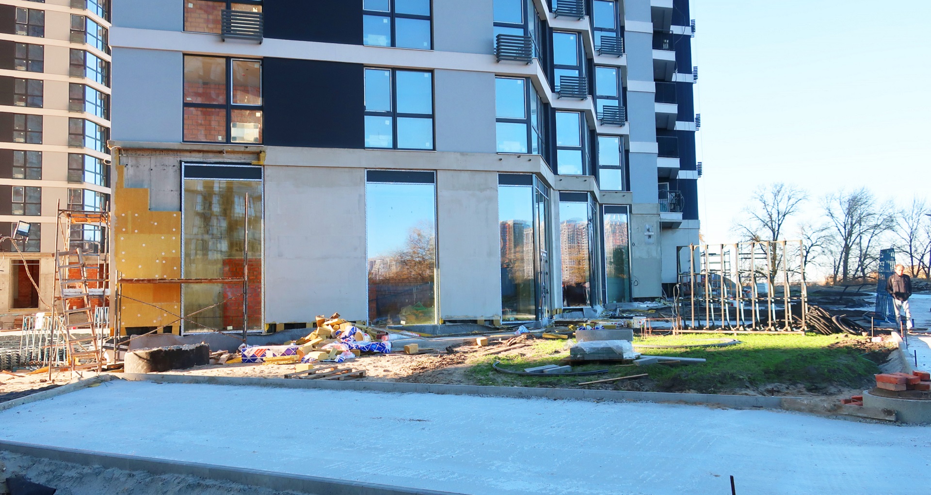 У будинку 7 виконується зовнішнє утелпення та оздоблення фасаду, ведуться роботи з монтажу кронштейнів під кондиціонери.