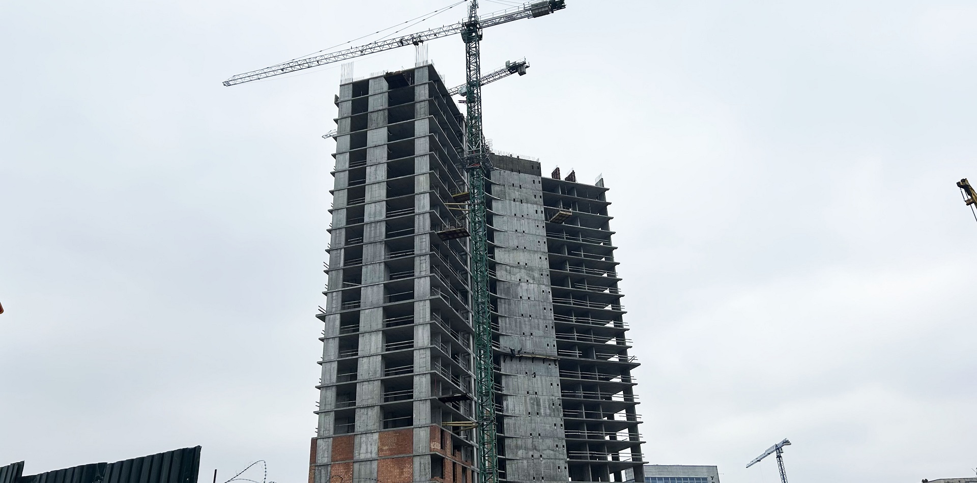 У View Tower виконується цегляна кладна на рівні 24-го поверху.