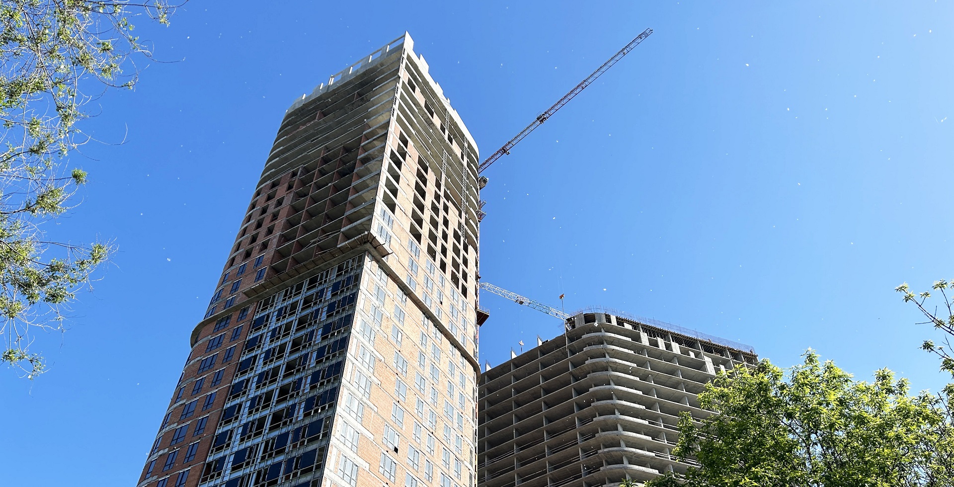 У View Tower виконується цегляна кладка на 25-му та 26-му поверхах.