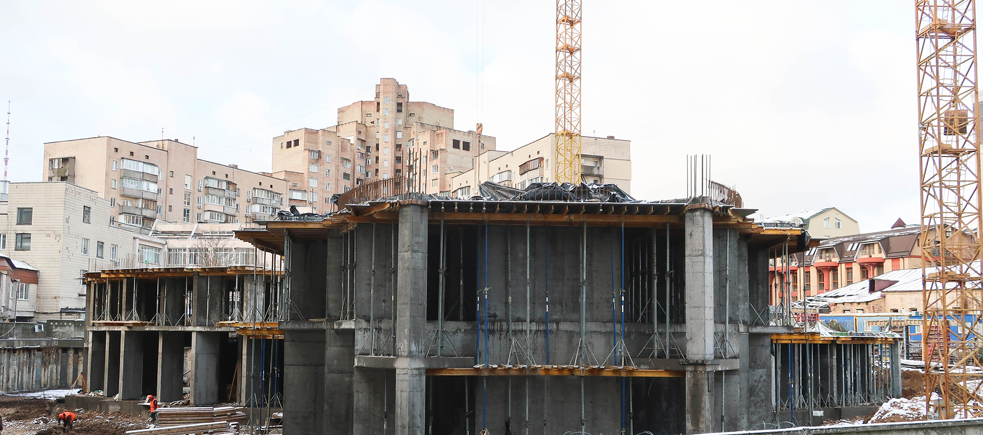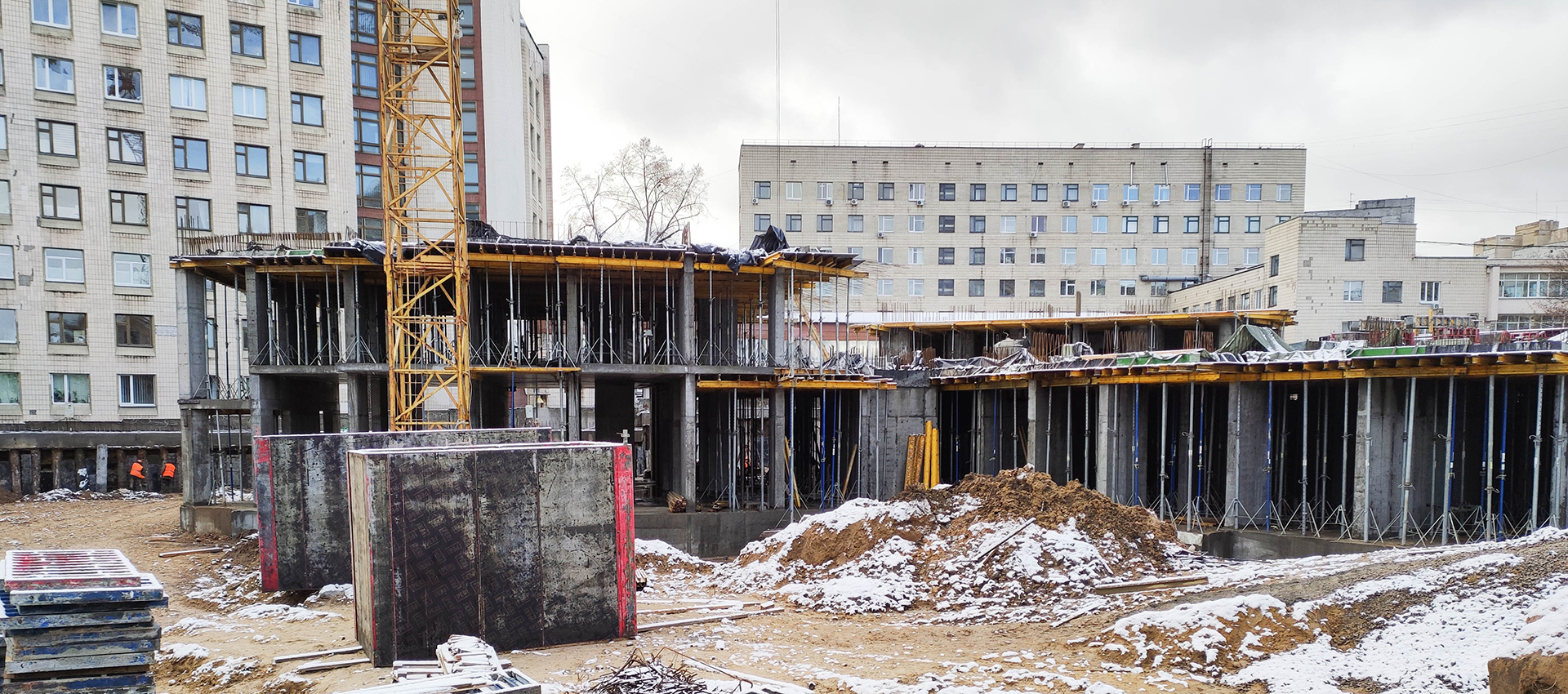 Work continues on waterproofing the underground part of the parking lot and installing monolithic structures.