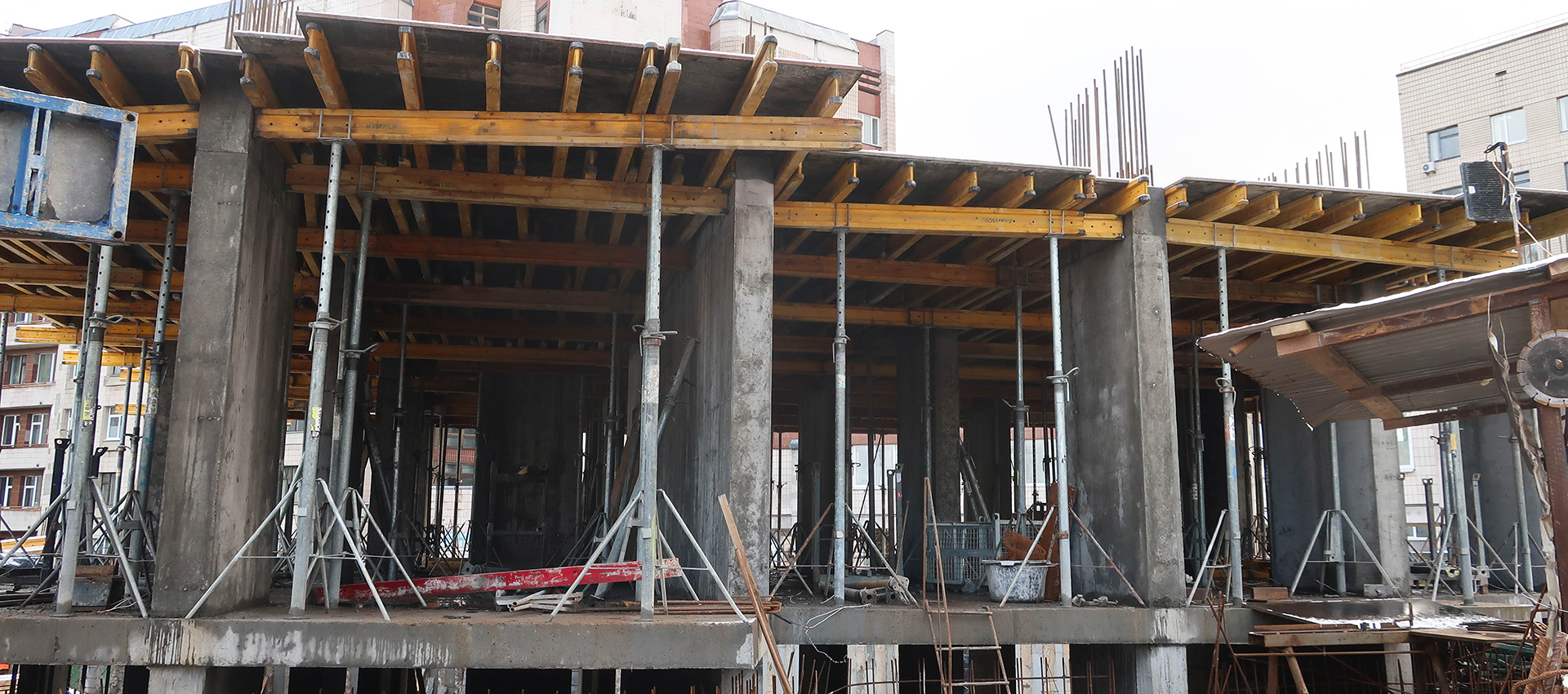 Work is underway to install vertical monolithic structures and the 1st floor floor slab.