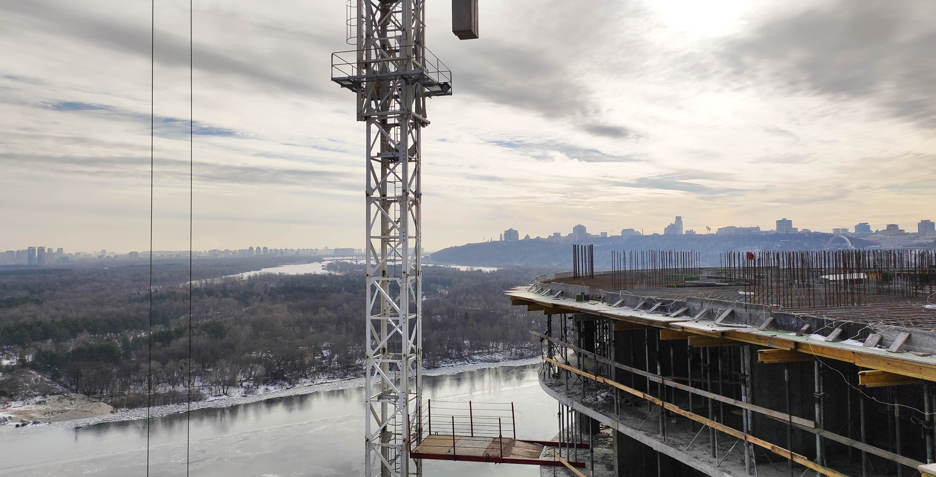 У Будинку 1 завершуються роботи з улаштування плити перекриття 25-го поверху. Виконуються роботи з цегляної кладки на рівні 16-го поверху. Монтаж сходових маршів 22-го поверху, монтаж вентиляційних блоків.