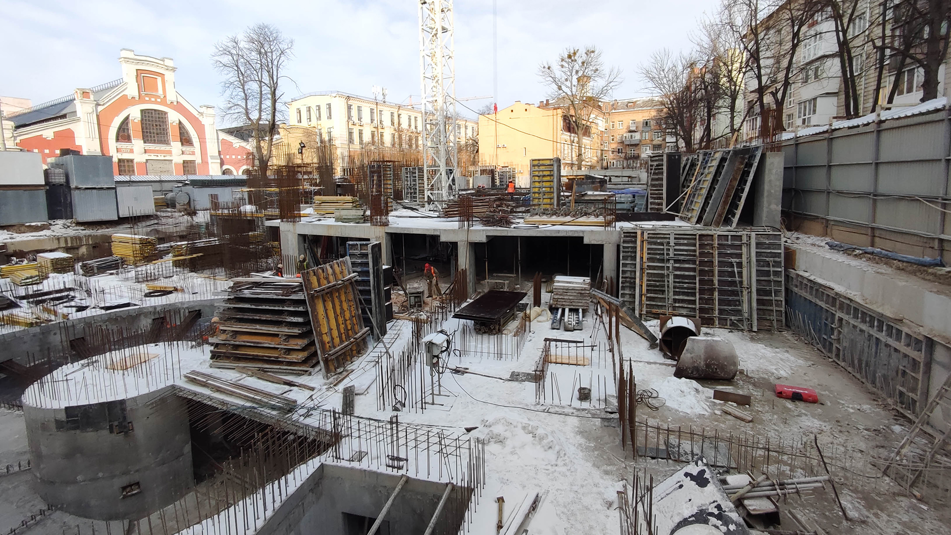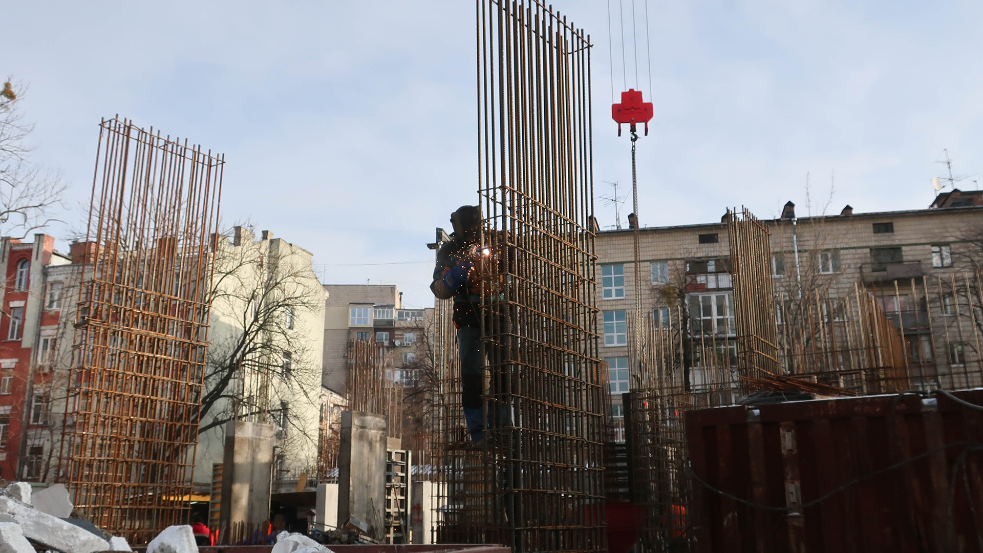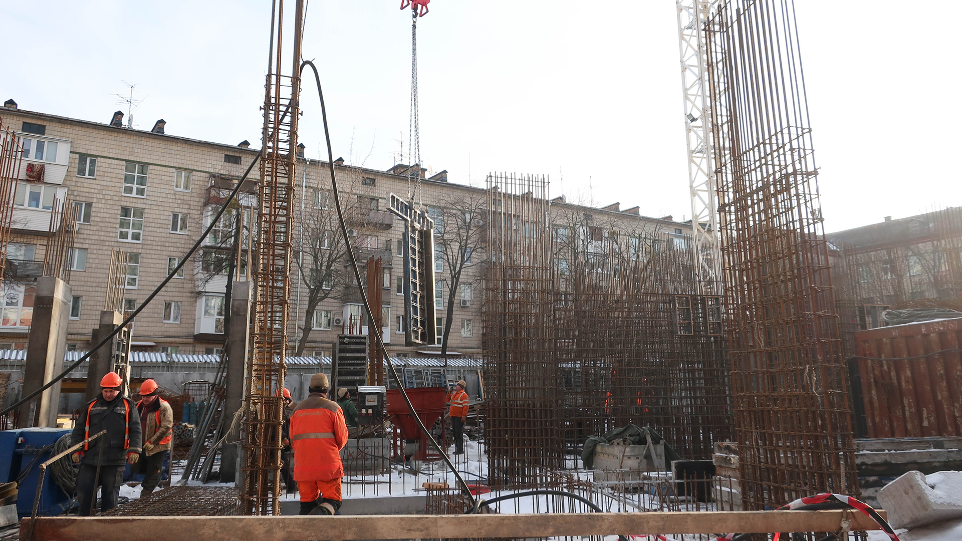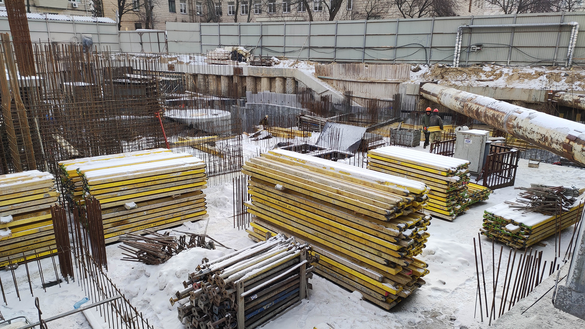 Продовжуються роботи з улаштування вертикальних елементів 1-го поверху паркінгу.