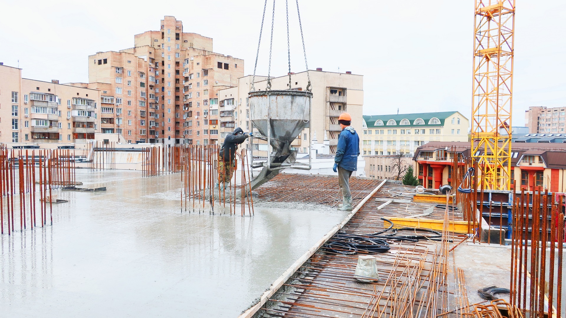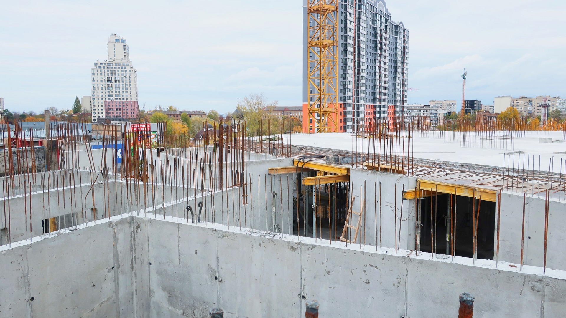Вертікальні елементи 5-го поверху завершено. Виконується плитя перекриття 5-го поверху.
