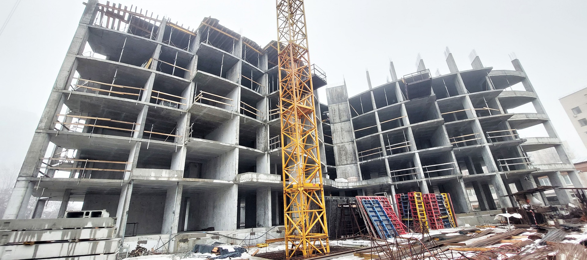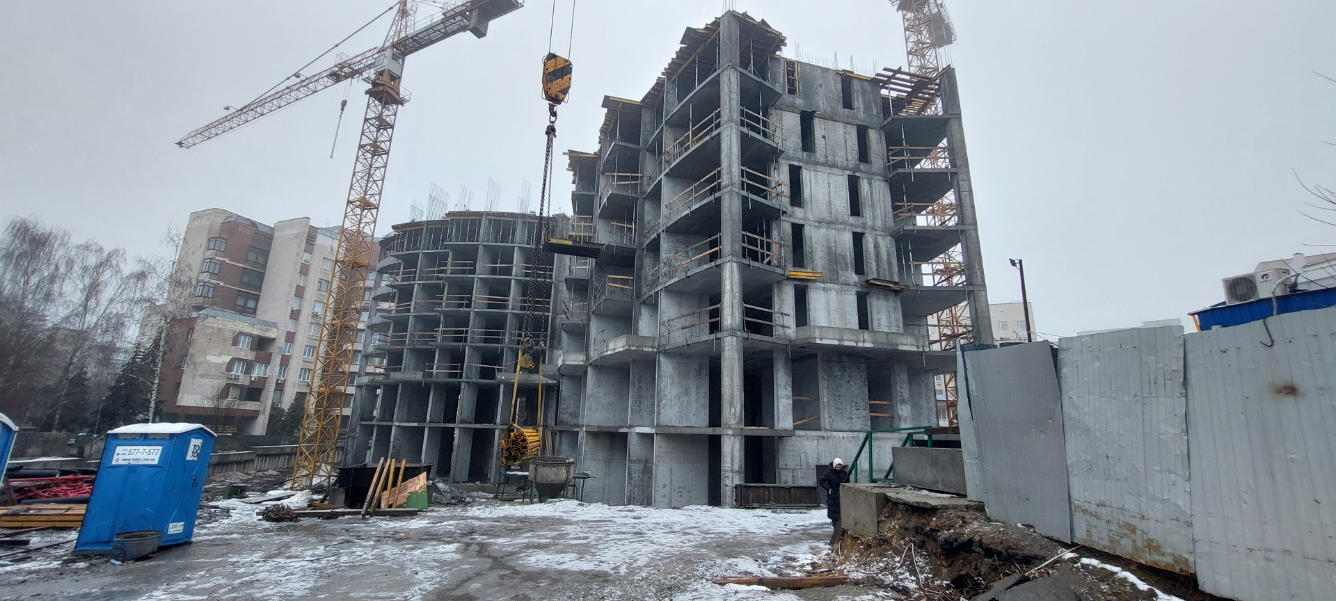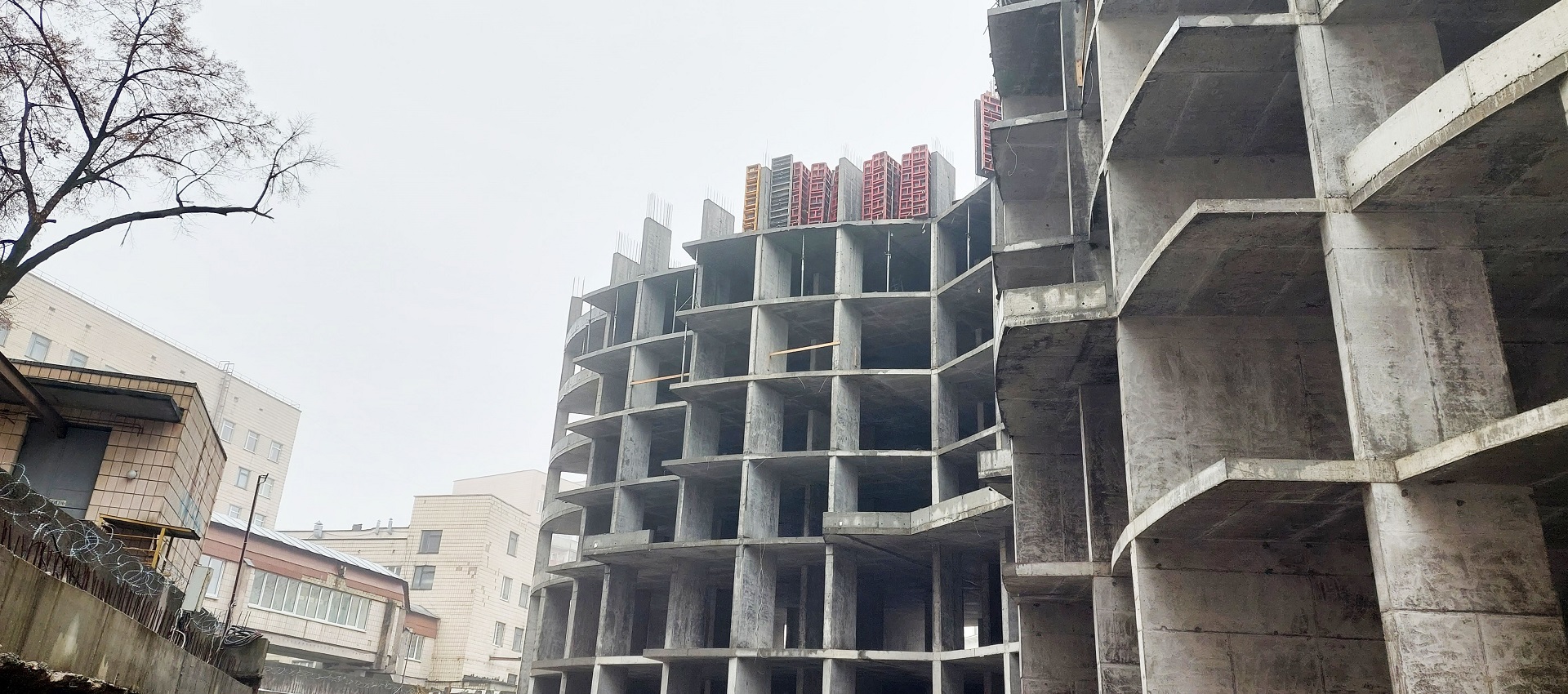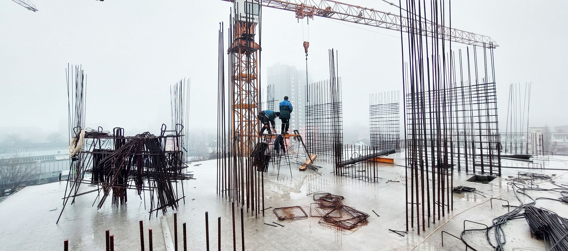Завершено вертикальні елементи 6-го поверху. Завершуються роботи з улаштування плити перекриття 6-го поверху.