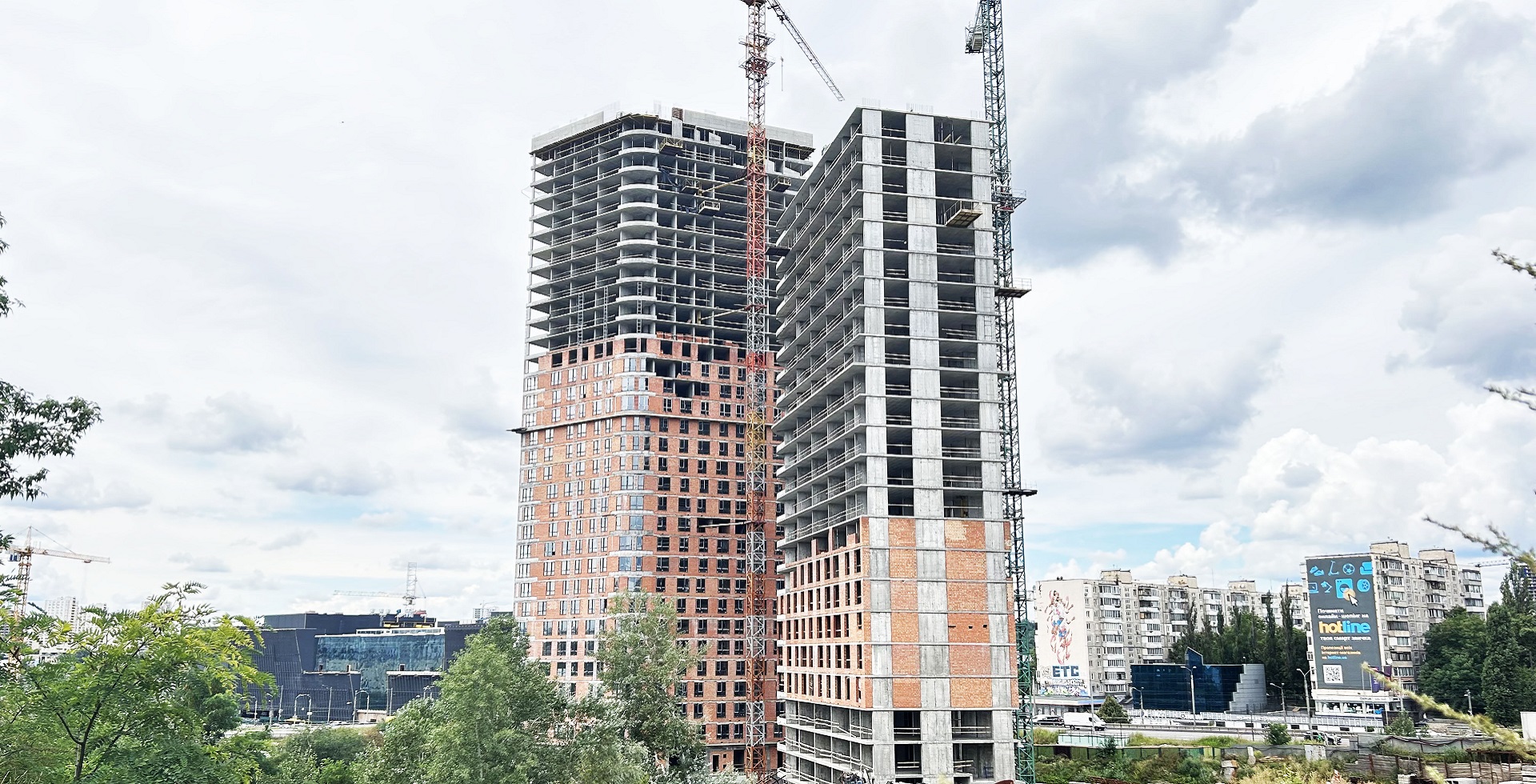 У View Tower завершується плита перекриття 33-го житлового поверху. Виконується парапет даху.