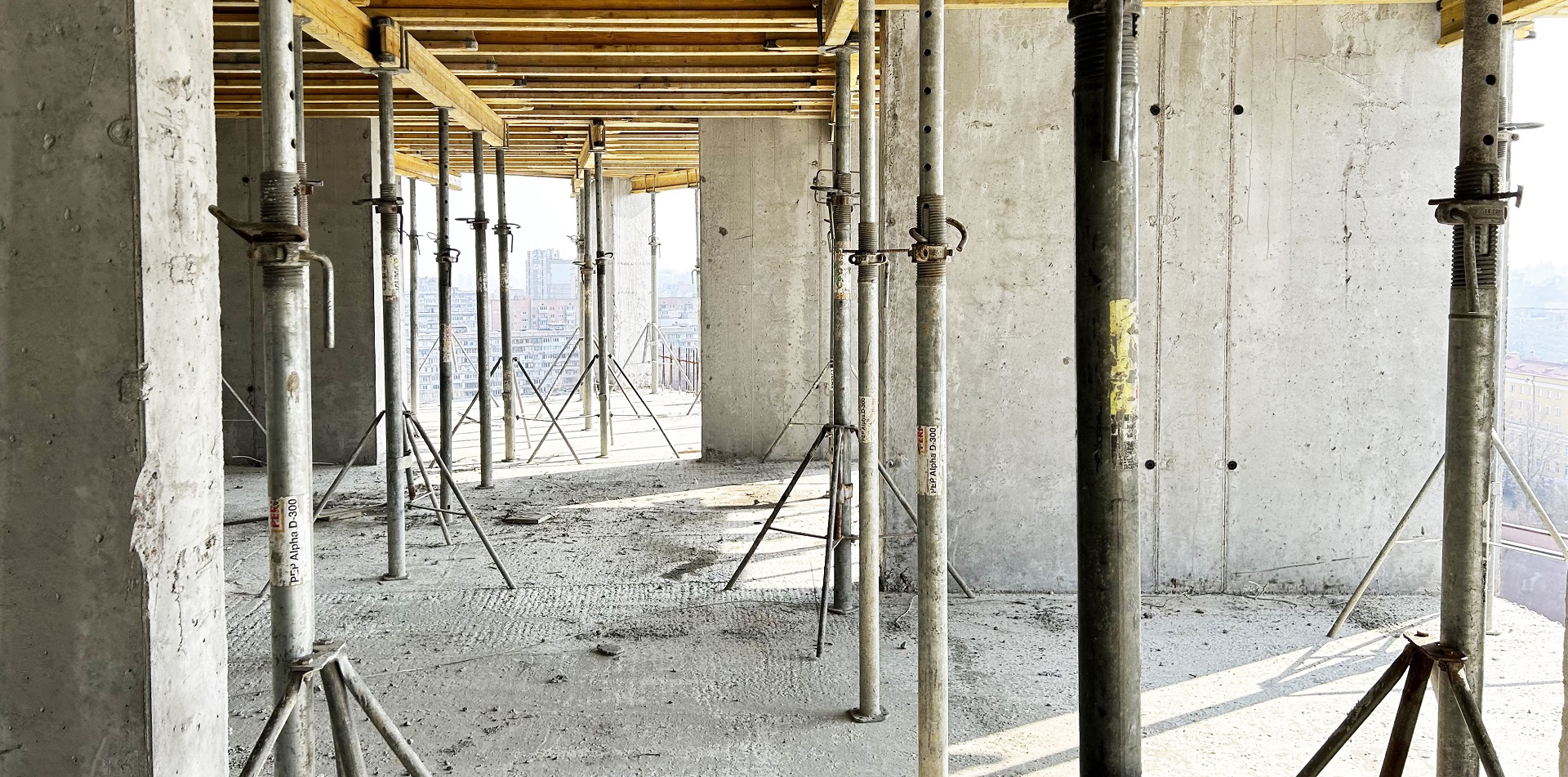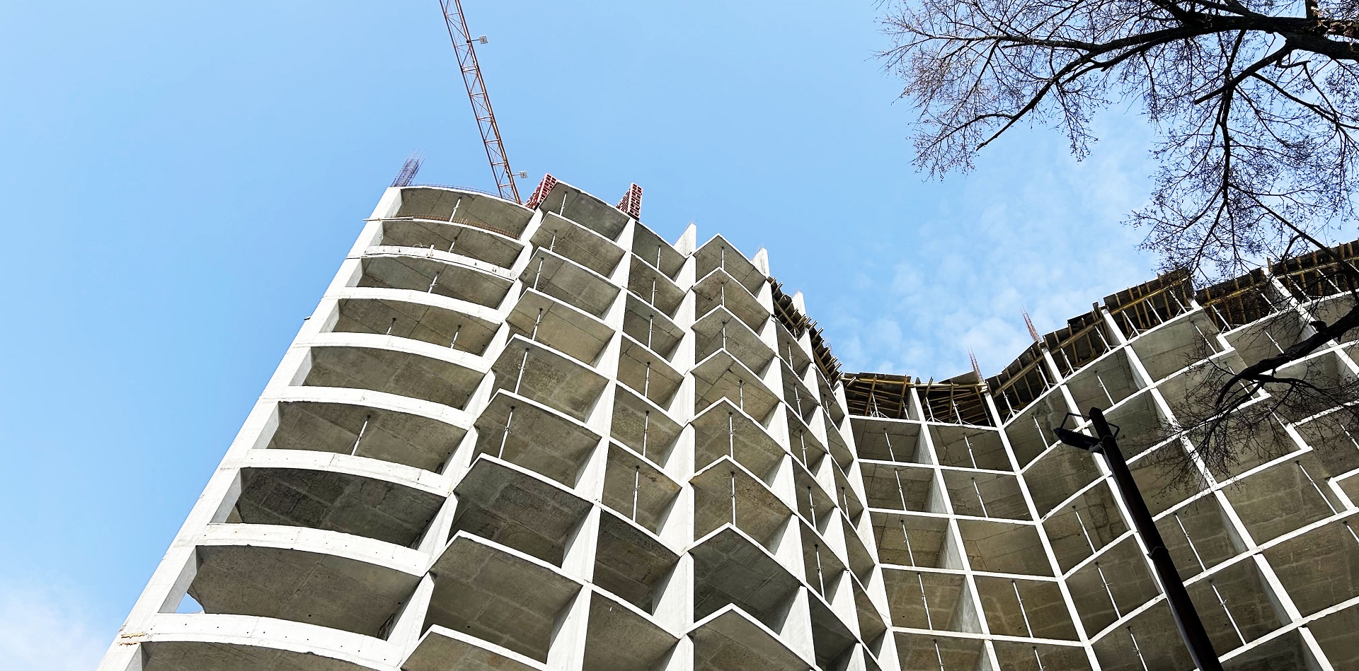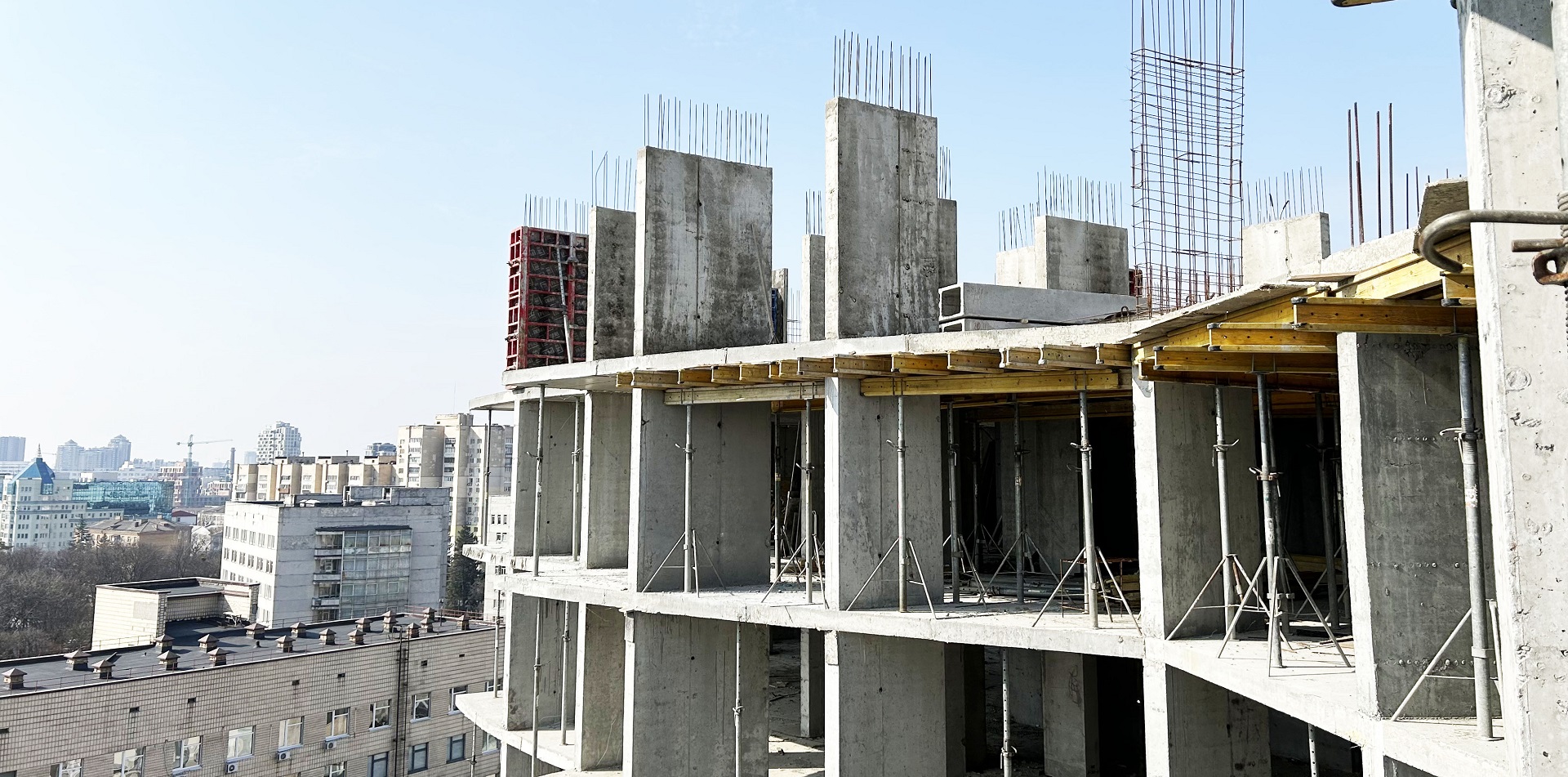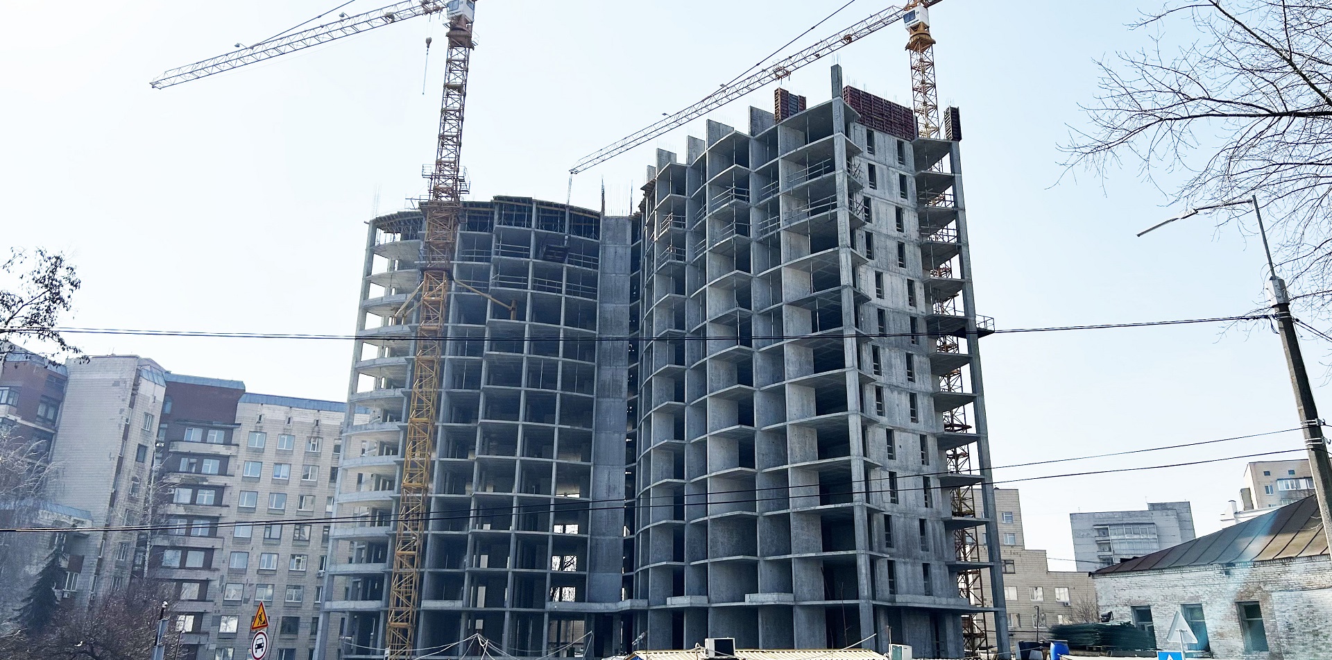 Завершуються роботи з улаштування плити перекриття 13-го поверху.