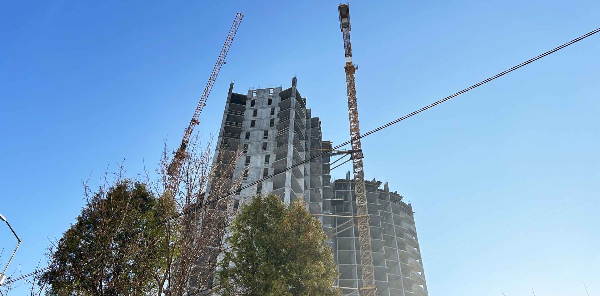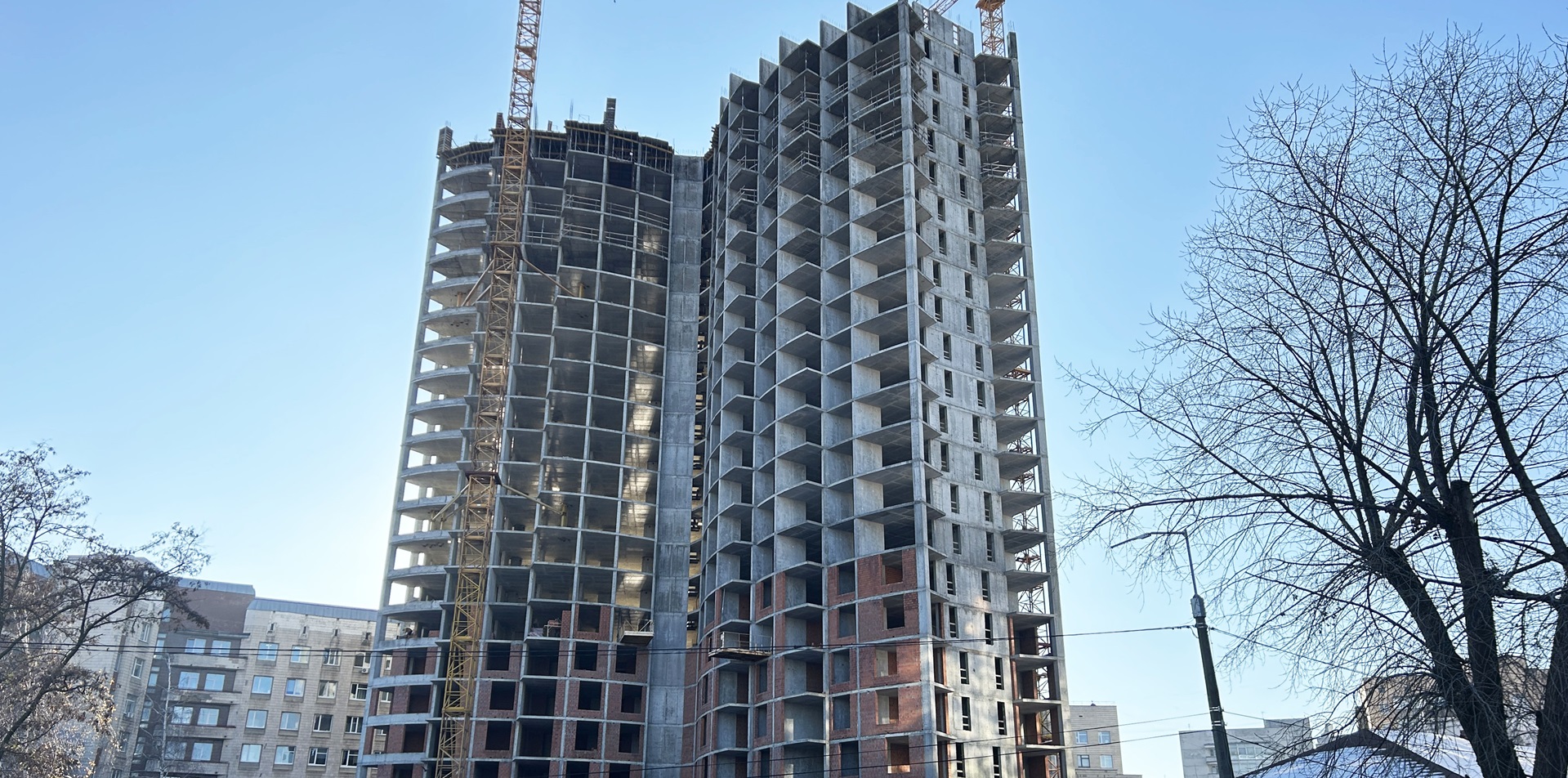Влаштування вертикальних елементів виконується на рівні 23-го поверху. Завершена плита перекриття 22-го поверху.