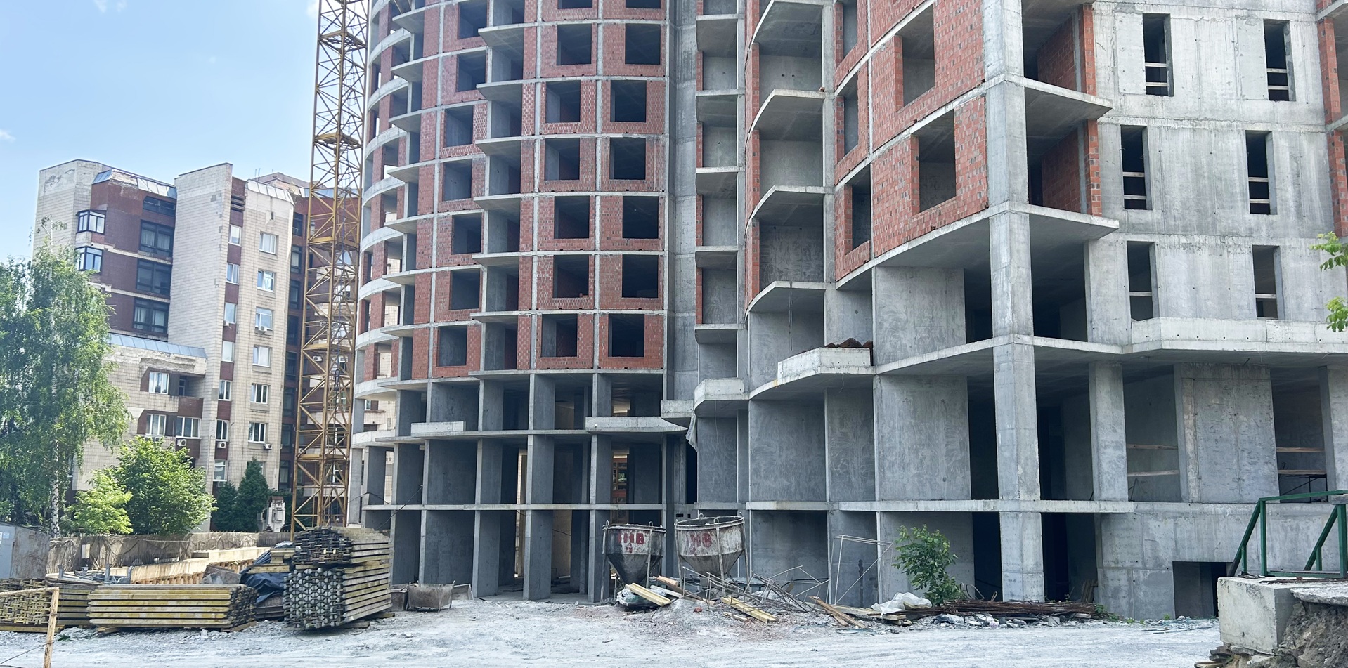 Виконується цегляна кладка стін на 13-му поверсі.